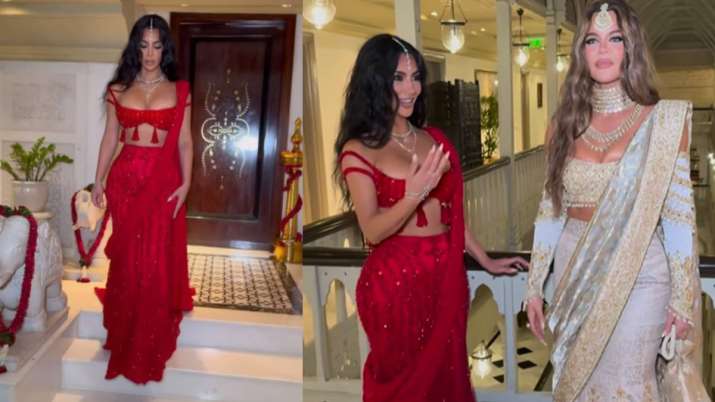 अनंत-राधिका की शादी में सुर्ख लाल लहंगे में सजीं किम कर्दाशियां, बहन का भी दिखा देसी अवतार