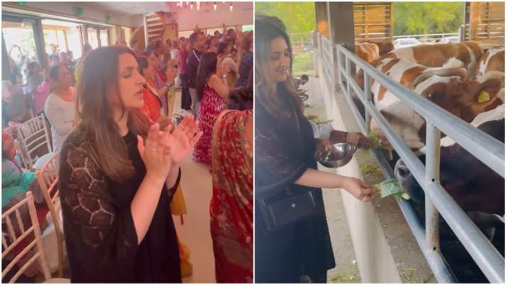 परिणीति चोपड़ा ने हाल ही में सोशल मीडिया पर एक वीडियो शेयर किया है, जिसमें वह लंदन के इस्कॉन मंदिर में कृष्ण भक्ति में लीन नजर आ रही हैं। इतना ही नहीं इस दौरान एक्ट्रेस गौ सेवा भी करती नजर आईं।
